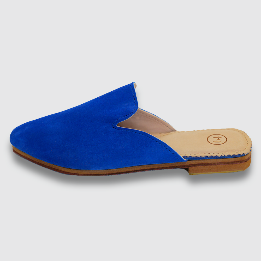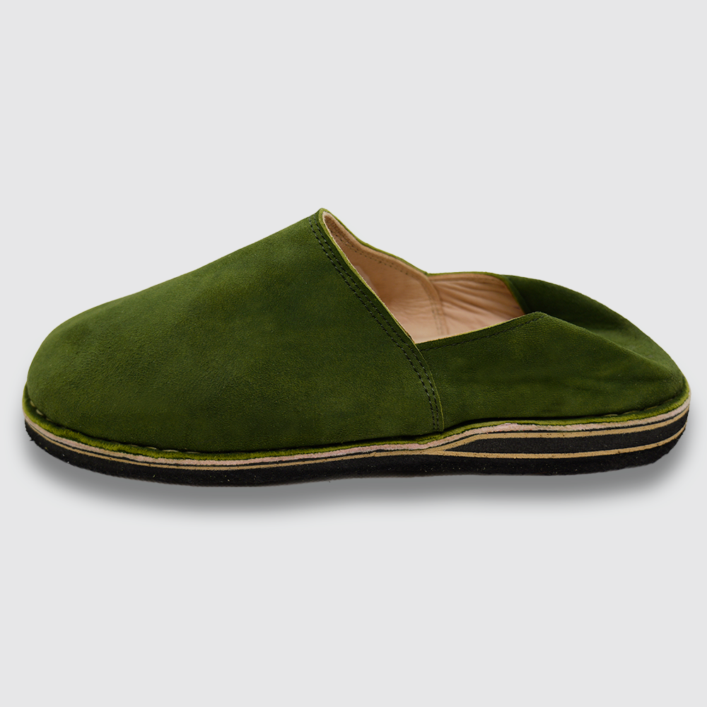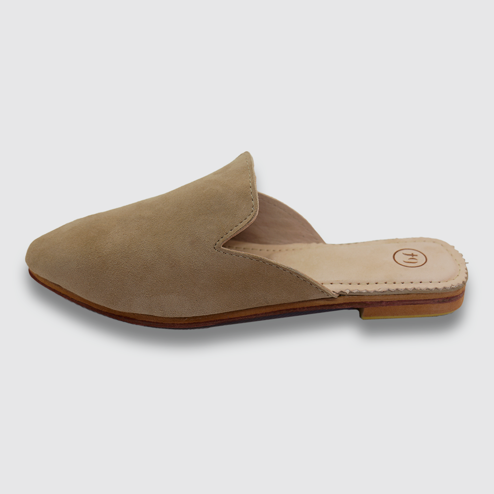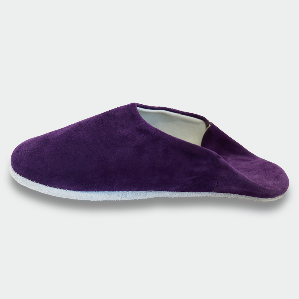 Le modèle féminin 2025 de Babouches France. 100% cuir cousu main, extérieur en cuir suédé, aspect daim. Elégante et raffinée, la chaussure SAHA est en cuir lisse à l'intérieur et elle possède une semelle intérieure molletonnée pour un confort inégalé. Semelle extérieure en cuir avec talon élastomère anti-dérapant.