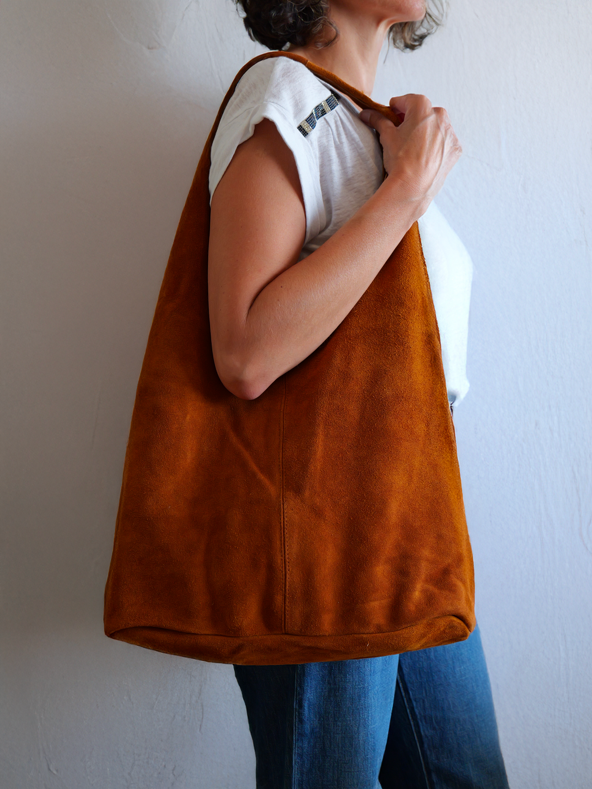 ISBAAH n’est pas un simple sac. C’est un geste, une allure, une présence. En suédine douce et souple, il épouse vos mouvements, glisse sur l’épaule, se pose sur vos genoux, s’ouvre comme une confidence.