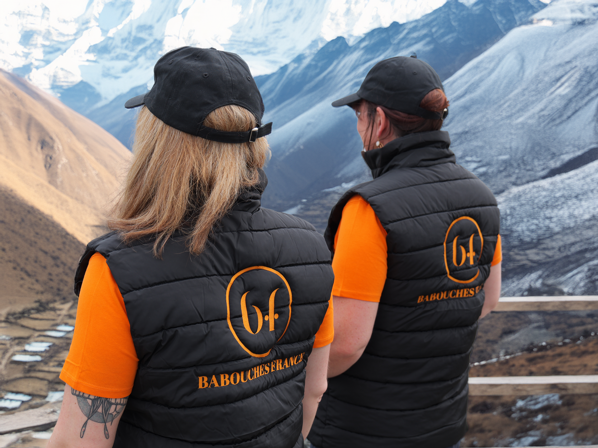 BABOUCHES FRANCE is funding school supplies for Nepalese children. Thanks to Marina and Gwen, two kind-hearted women from Brittany who decided to trek to Nepal. As part of a charitable initiative, we sponsored these two remarkable women so they could complete their journey and their mission: to bring school supplies to needy Nepalese children.